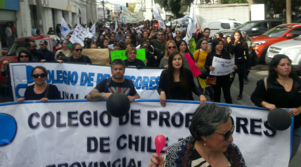 En el marco del Paro indefinido que desde el lunes pasado convocó a nivel nacional el Colegio de Profesores, este martes unos seiscientos profesores adheridos a la movilización marcharon por el centro de San Felipe, demandando con pancartas y lienzos que el Gobierno de respuesta a las diversas demandas que por largos años está haciendo el gremio. Marcha similar desplegaron los profesores en la ciudad de Los Andes.