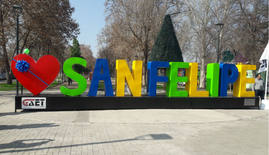 Con la presencia de distintas autoridades y vecinos, fue inaugurada en la intersección de avenidas Chacabuco con Maipú la intervención urbana que la empresa GAET Ingeniería regaló a la ciudad con motivo de los 279 años de su fundación, con el nombre San Felipe en llamativas y coloridas letras corpóreas.
