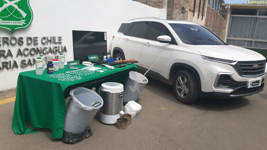Tras diversas diligencias que se extendieron por varios meses, el OS-7 de Carabineros con apoyo de personal del GOPE y efectivos de la sección de intervención de la Prefectura de Aconcagua, desplegó un operativo y allanamiento de cuatro domicilios en la villa El Salitre en Llay Llay, logró la detención de cinco hombres y una mujer, integrantes de una banda de traficantes que mantenían en funcionamiento un laboratorio para procesar y aumentar base de cocaína.