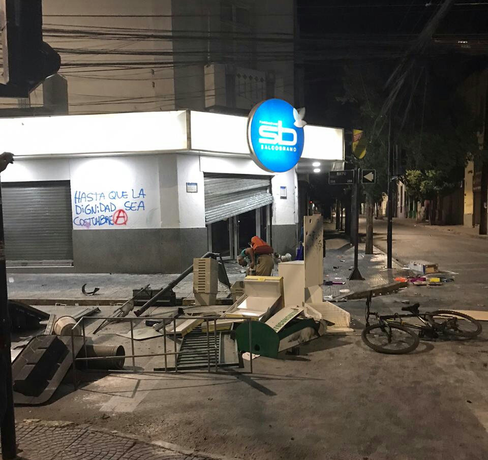Sin embargo, lo que marcaria la jornada en Los Andes fue una serie de ataques y saqueos a locales comerciales céntricos, empezando todo muy temprano con el ingreso de un grupo al banco Scotiabank, ubicado en Papudo con Esmeralda.