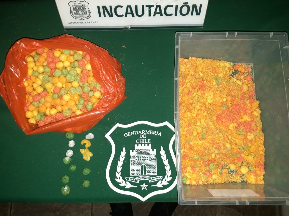 Funcionarios de Gendarmería del Centro de Cumplimiento Penitenciario de Los Andes en revisión a las visitas de internos de este recinto detectaron en Chis Pop y en trozo de carne importante cantidad de droga.
