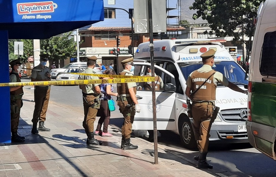 Carabineros y SAMU activaron protocolo de alerta ante posible caso de contagio de Covid-19 en pleno centro de San Felipe, luego que una mujer en las afueras del local Liquimax en calle Coimas frente a la plaza de armas, aseguró que era portadora y que estaba en cuarentena. Transeúntes molestos intentaron agredirla.