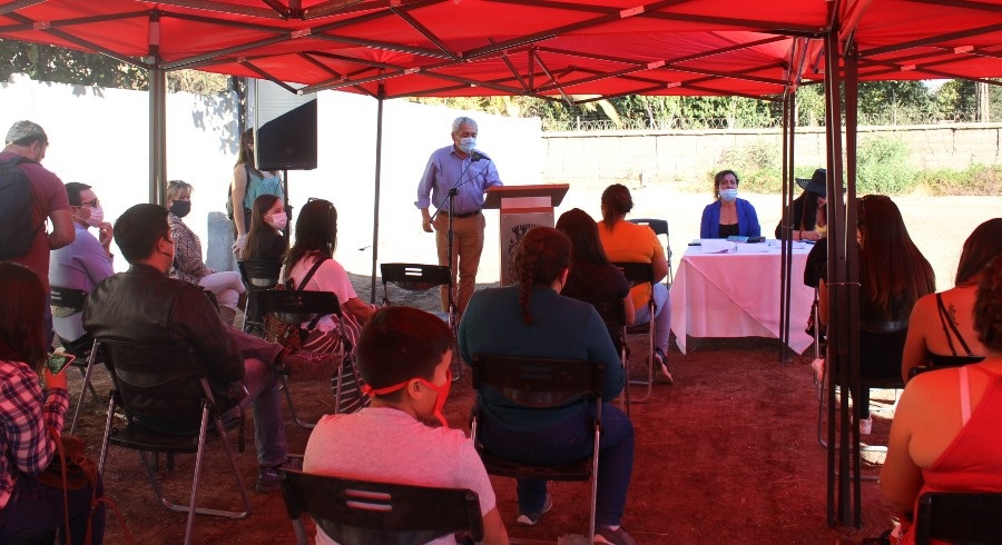 La firma del contrato y entrega de terreno a la constructora se plasmó en una sencilla ceremonia presidida por el alcalde Pedro Caballería, autoridades del Serviu y vecinos, con todos los resguardos de distanciamiento social y mascarillas.