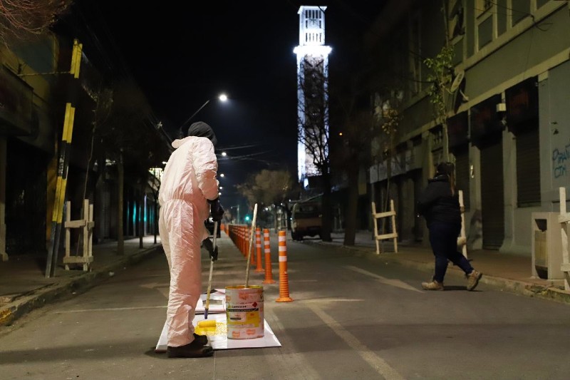 Preparando la comuna para dejar este lunes 24 de agosto la cuarentena que se extendió por dos meses y cuatro días, la Municipalidad de Los Andes durante todo el fin de semana trabajó con su personal en la instalación y pintado de demarcación peatonal y de distancia física, así como la disposición de señalética para inducir a la población a respetar las medidas de autocuidado frente al Covid-19.