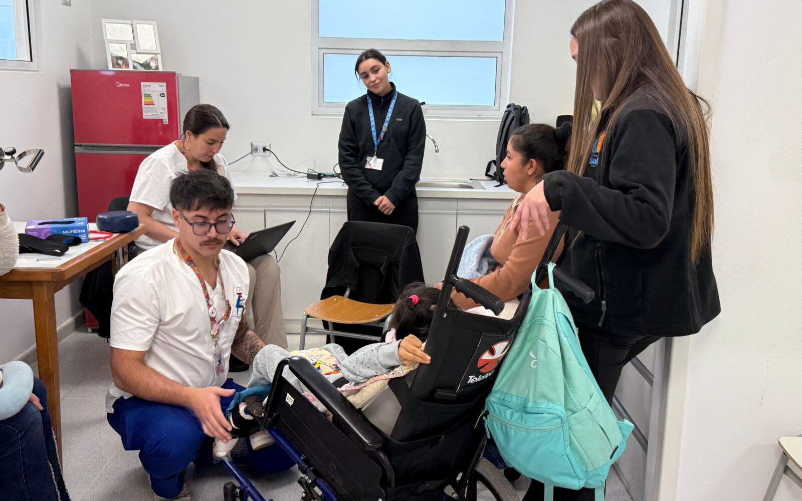 La ronda de atención se organizó en duplas profesionales que atendieron de forma coordinada: médico fisiatra con kinesiólogo, fonoaudióloga con terapeuta ocupacional, educadora con psicóloga y enfermera con asistente social.