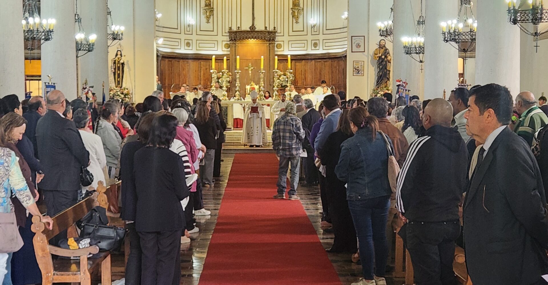 El templo madre de la diócesis se convirtió en el centro de una profunda oración de gratitud, donde participaron autoridades civiles, militares y eclesiales, junto a representantes de instituciones públicas y privadas, colegios católicos y confesionales, juntas de vecinos, Cruz Roja, Carabineros, Bomberos, PDI, hospitales y miembros de comunidades parroquiales de las provincias de Los Andes, San Felipe y Petorca.