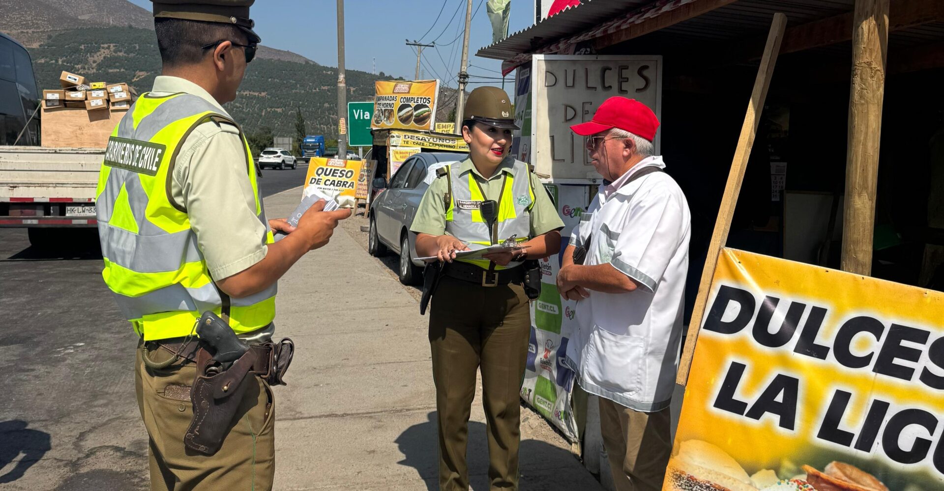 En este contexto Carabineros desplegó personal en el sector de Las Vegas con el objetivo de informar al comercio ambulante y comercio establecido en el sector del peaje sobre el posible incremento de riesgos de accidentes viales y situaciones de exposición a zonas de obra.